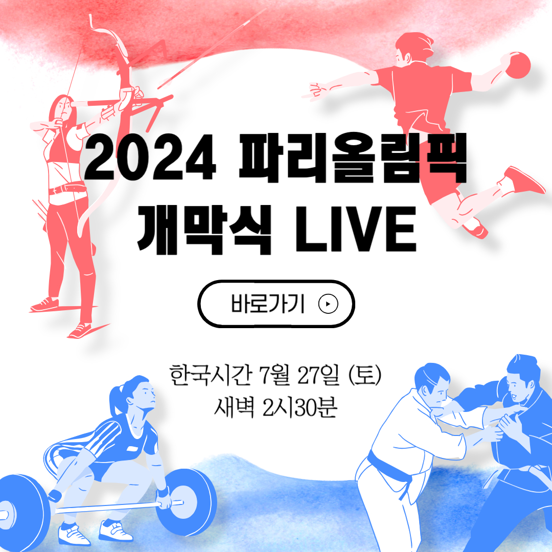 2024 파리올림픽 개막식이 한국시간으로 7월 27일 토요일 새벽 2시 30분에 열립니다. 이번 개막식은 파리의 상징인 ‘센강’에서 각 선수단과 관계자들이 총 94척의 보트를 타고 입장할 예정입니다. 올림픽 역사 최초로 올림픽 경기장이 아닌 곳에서 개막식이 열리는만큼 일생일대의 장관을 선사할 것 같습니다. 파리에 직접 가서 보시는 분들이 부럽습니다. 직접 가시지 못하는 분들은 위 버튼을 통해 실시간 중계 시청해보세요.